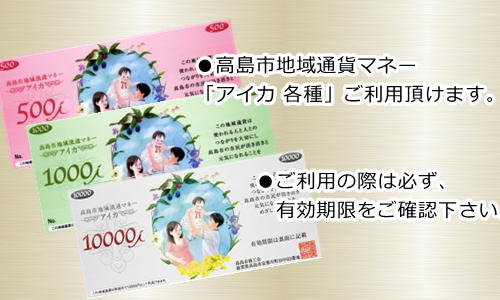 ▲地域通貨マネー「アイカ各種」ご利用頂けます。